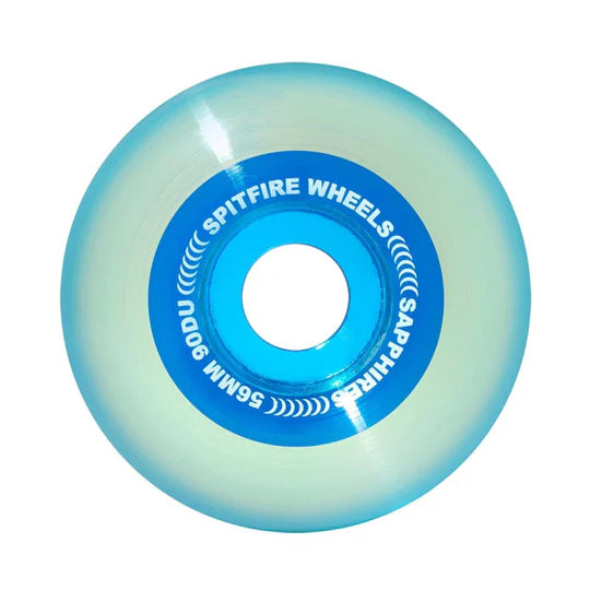 Sapphire technology blends modern design with cruising functionality, the Spitfire Sapphires Radial Cruiser Skateboard Wheels allow you to cruise in comfort. Crafted from ultra soft, translucent urethane in the unique radial shape that combines rounded and slightly sharper edges for enhanced grip when carving and turning. These wheels feature a shock-absorbing smooth riding surface with a wide profile to effortlessly roll through any terrain. Sold as a set of four in multiple sizes.